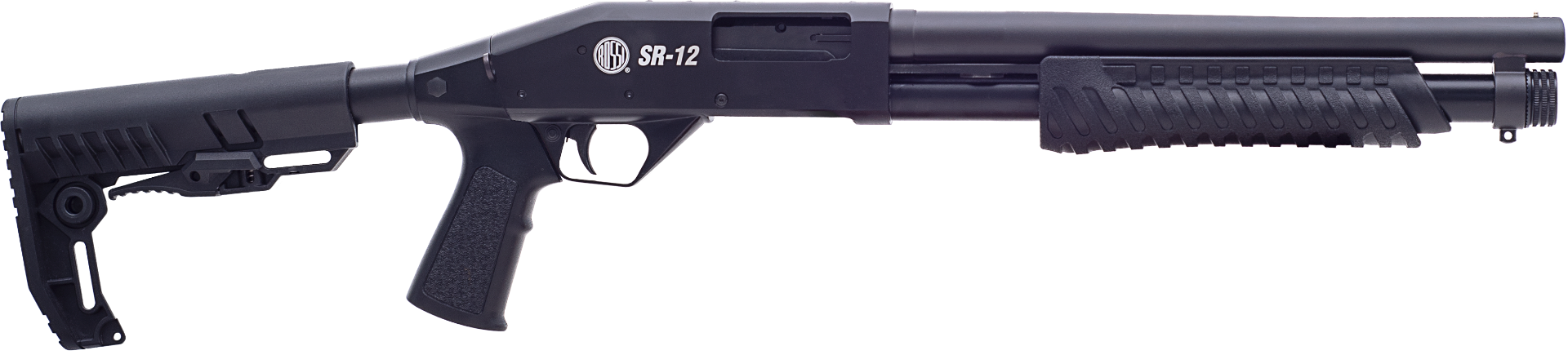 Rossi SR-12 Tactical je ideální volbou tam, kde je klíčová spolehlivost a rychlost obsluhy. Pumpovací (pump) mechanismus zajišťuje rychlou a bezpečnou palbu s vysokou kadencí a vynikající odolností v náročném provozu. Konstrukce kombinuje lehký, přesto pevný rám z hliníkové slitiny s karbonovou ocelovou hlavní a odolnými polymerovými doplňky. Taktické prvky zahrnují Picatinny lištu pro montáž optiky či kolimátoru, ghost-ring nastavitelné zadní mířidlo pro rychlé zamíření a pevné přední mířidlo, ergonomický grip pro jisté držení a exkluzivní pažbu (buttstock) navrženou pro operativní použití.