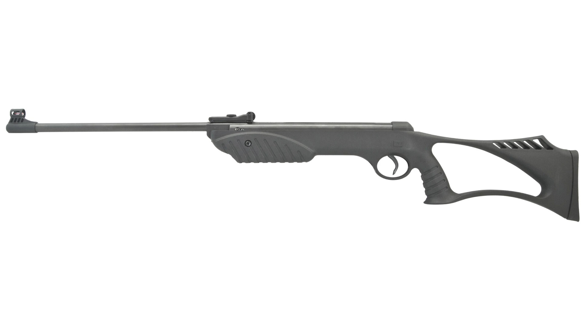 Celý systém vzduchovky Borner XSB je zasazený do polymerové pažby s kompaktními rozměry a futuristickým otevřeným vzhledem. Ergonomie pažby vyhoví jak pravákům tak levákům.